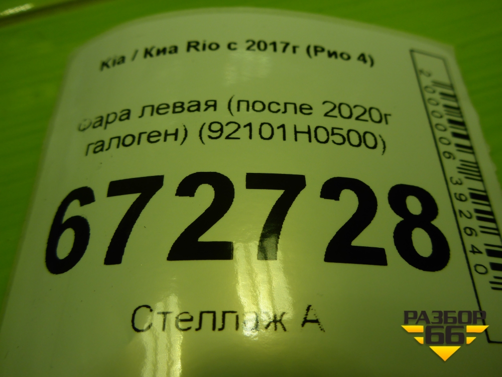 Фара левая (после 2020г галоген) (92101H0500) для Kia Rio с 2017г (Рио 4) в Москве