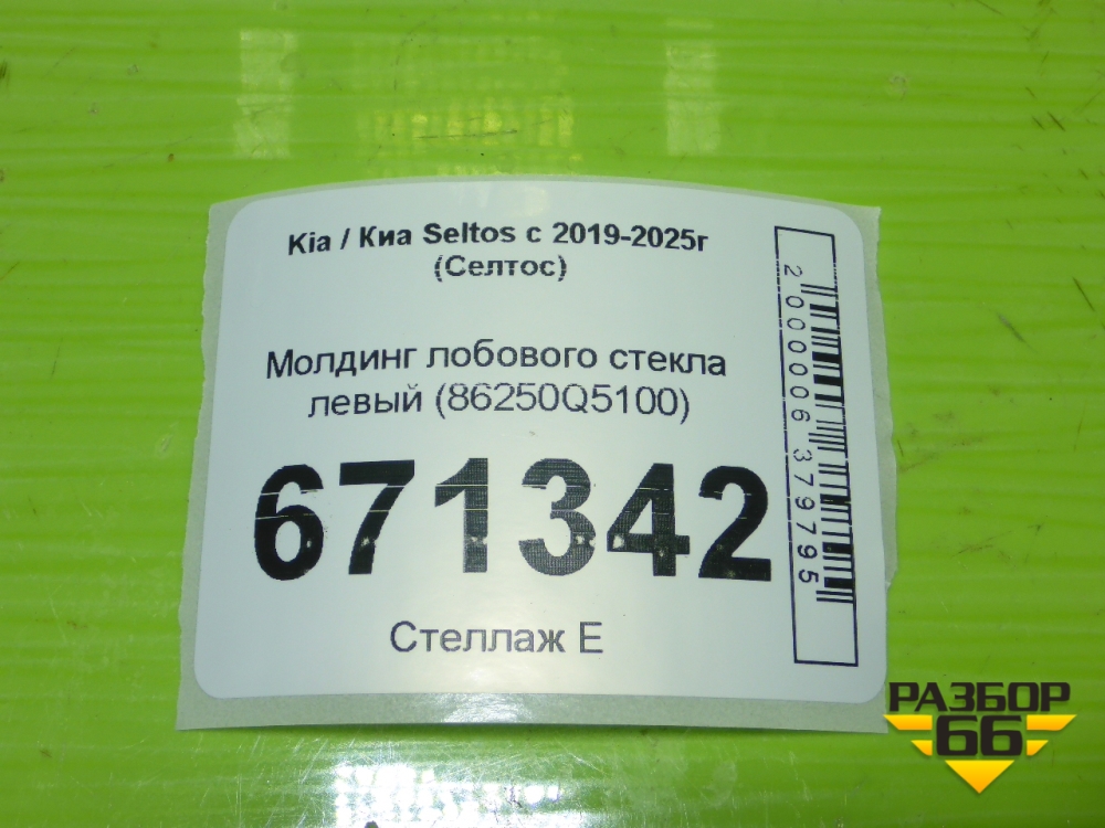 Молдинг лобового стекла левый (86250Q5100) для Kia Seltos с 2019-2025г (Селтос) в Москве