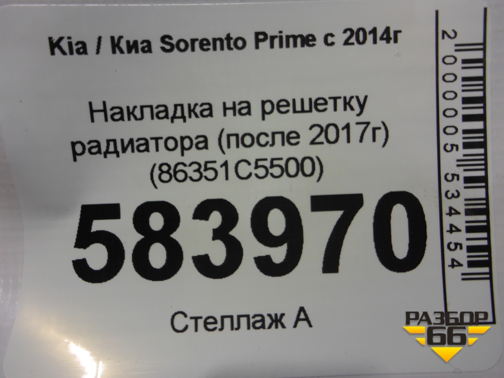 Накладка на решетку радиатора (после 2017г) (86351C5500) для Kia Sorento III Prime с 2014-2020г (Соренто3) в Москве