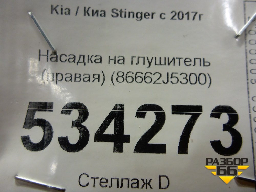 Насадка на глушитель (правая) (86662J5300) для Kia Stinger с 2017г (Стингер) в Москве