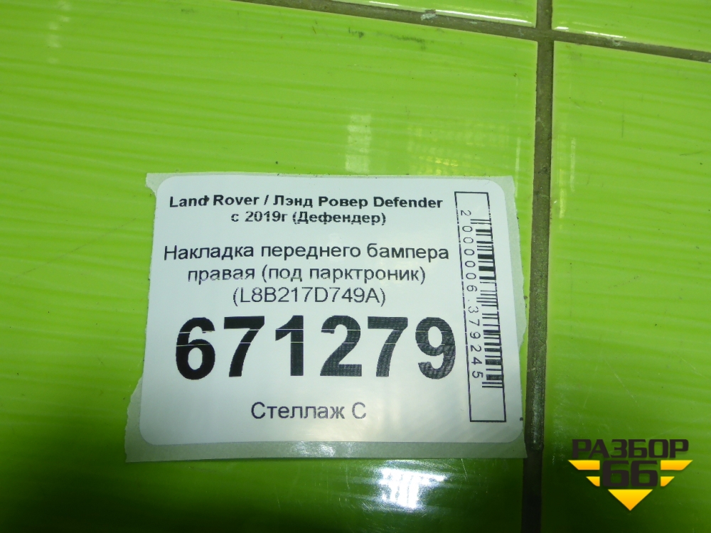 Накладка переднего бампера правая (под парктроник) (L8B217D749A) для Land Rover Defender с 2019г (Дефендер) в Москве