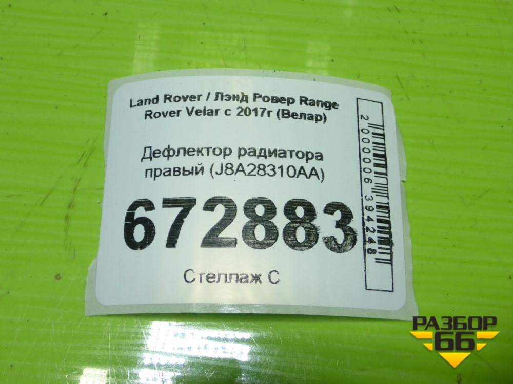 Дефлектор радиатора правый (J8A28310AA) для Land Rover Range Rover Velar с 2017г (Велар) в Москве