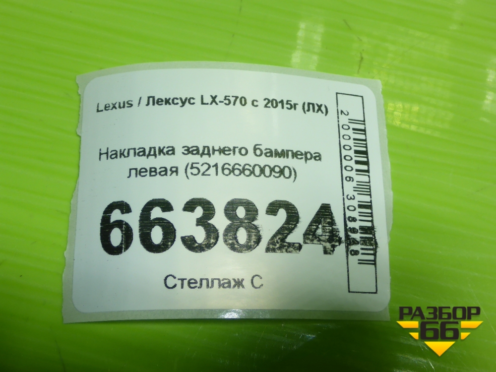 Накладка заднего бампера левая (5216660090) для Lexus LX-570 с 2015г (ЛХ) в Москве