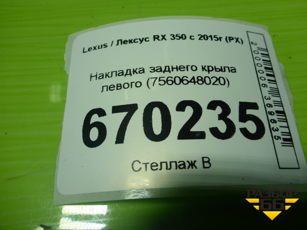 Накладка заднего крыла левого (7560648020) для Lexus RX 350 c 2015г (РХ) в Москве