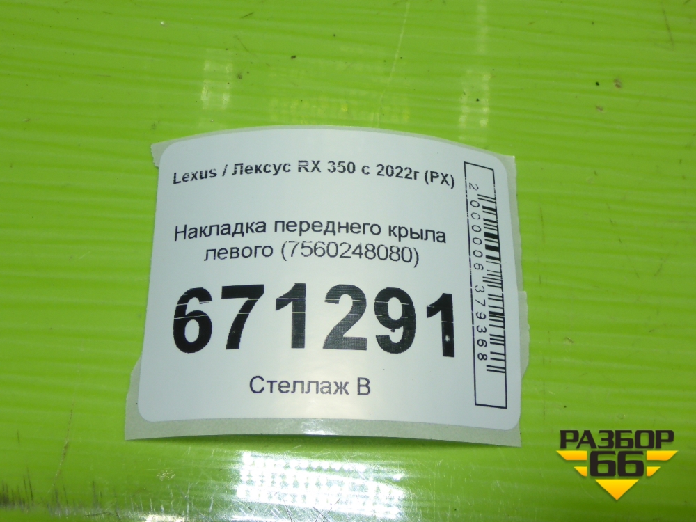 Накладка переднего крыла левого (7560248080) для Lexus RX 350 с 2022г (РХ) в Москве