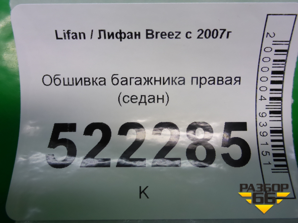 Обшивка багажника правая (седан) для Lifan Breez с 2007г (Бриз) в Москве