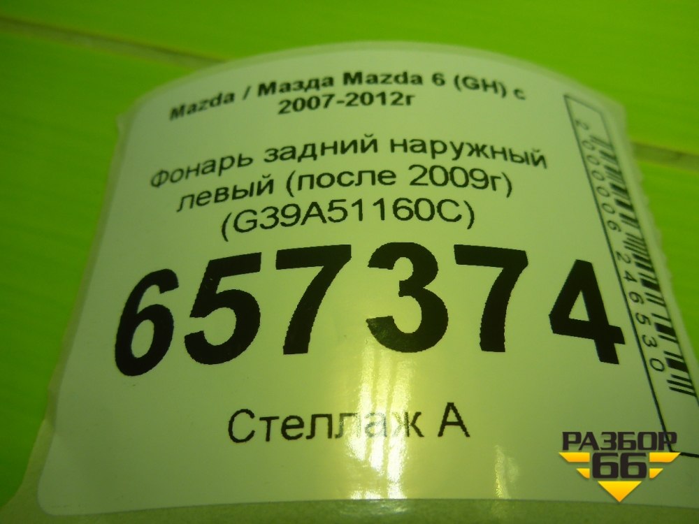 Фонарь задний наружный левый (после 2009г) (G39A51160C) для Mazda Mazda 6 (GH) с 2007-2012г в Москве
