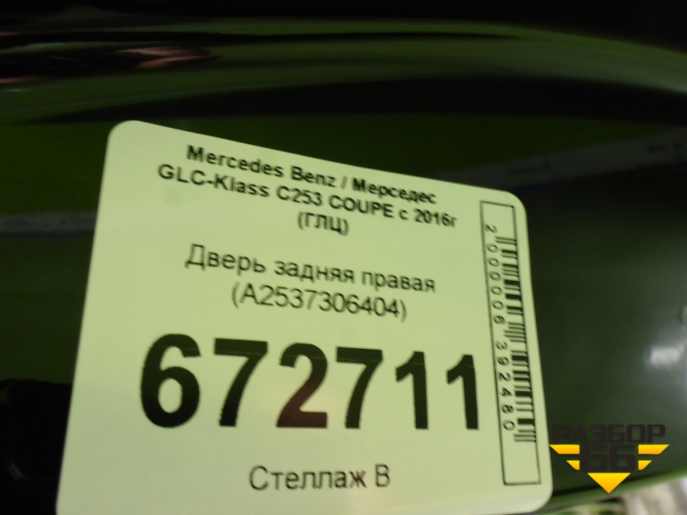 Дверь задняя правая (A2537306404) для Mercedes Benz GLC-Klass C253 COUPE с 2016г (ГЛЦ) в Москве