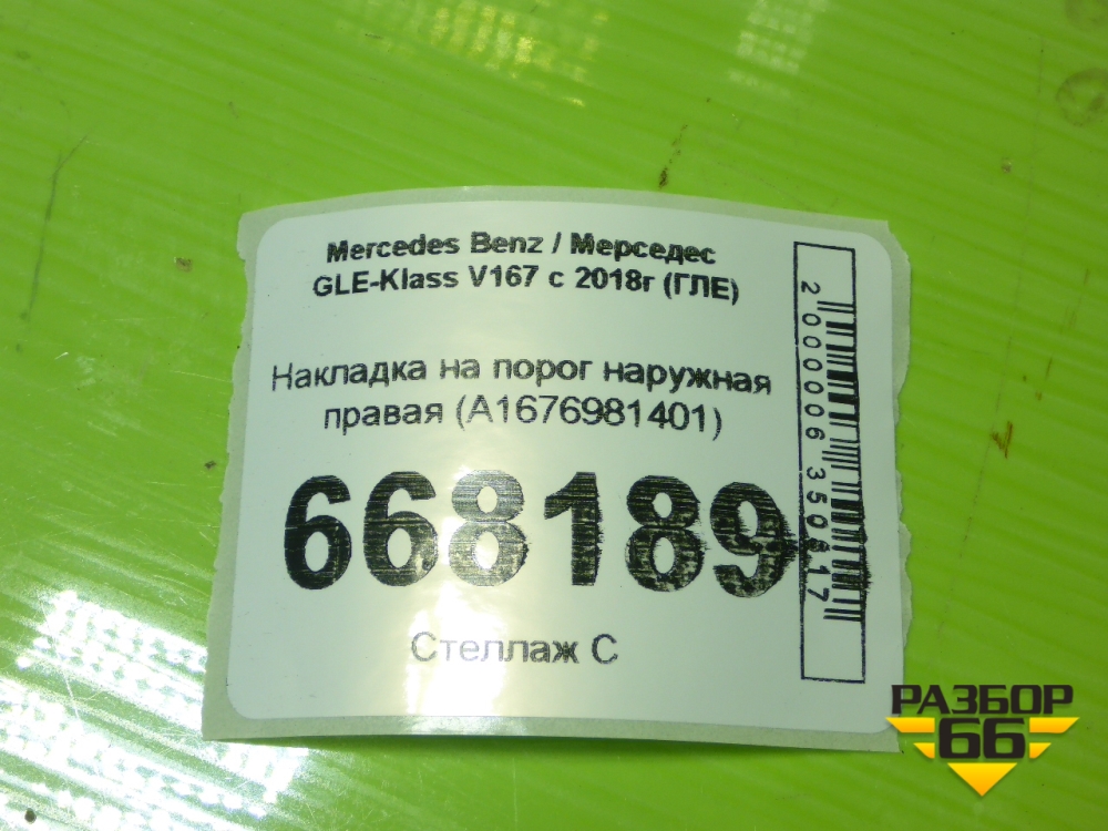 Накладка на порог наружная правая (A1676981401) для Mercedes Benz GLE-Klass V167 с 2018г (ГЛЕ) в Москве
