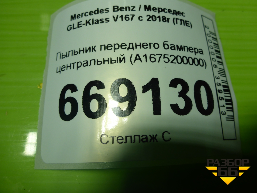 Пыльник переднего бампера центральный (A1675200000) для Mercedes Benz GLE-Klass V167 с 2018г (ГЛЕ) в Москве