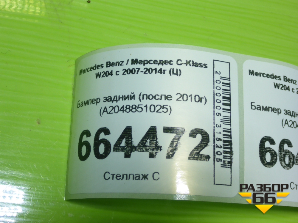 Бампер задний (после 2010г) (A2048851025) для Mercedes Benz C-Klass W204 с 2007-2014г (Ц) в Москве