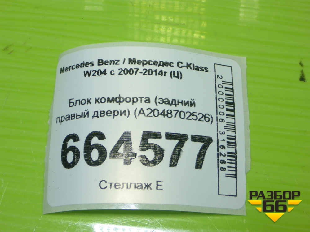 Блок комфорта (задний правый двери) (A2048702526) для Mercedes Benz C-Klass W204 с 2007-2014г (Ц) в Москве