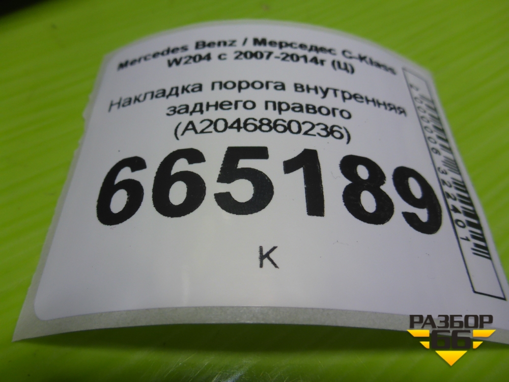 Накладка порога внутренняя заднего правого (A2046860236) для Mercedes Benz C-Klass W204 с 2007-2014г (Ц) в Москве