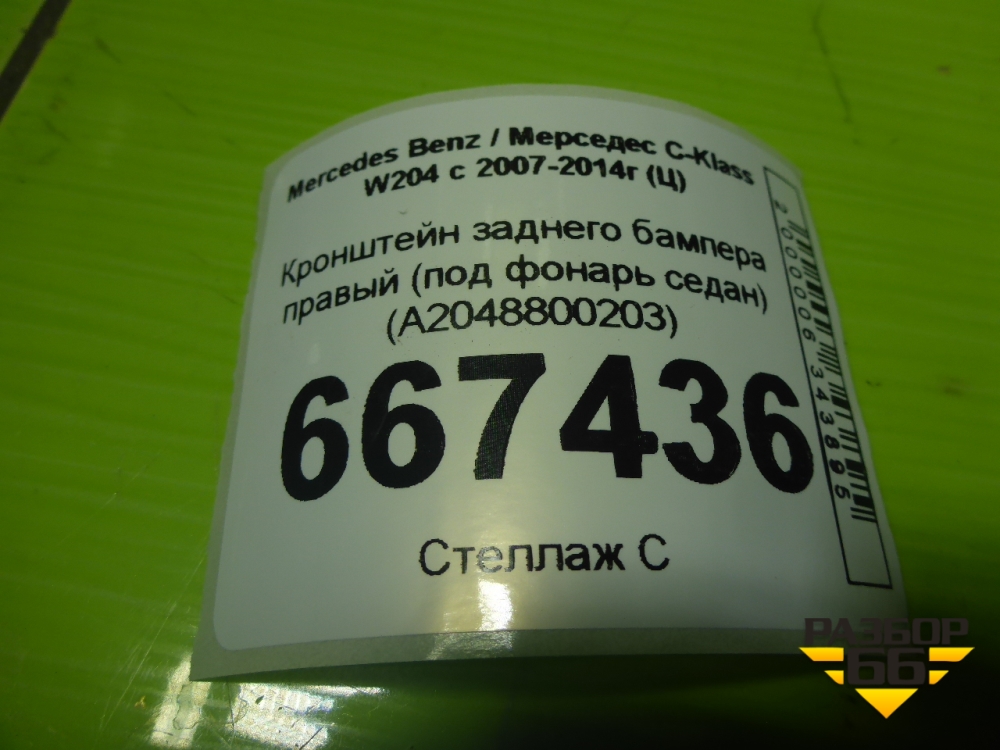Кронштейн заднего бампера правый (под фонарь седан) (A2048800203) для Mercedes Benz C-Klass W204 с 2007-2014г (Ц) в Москве