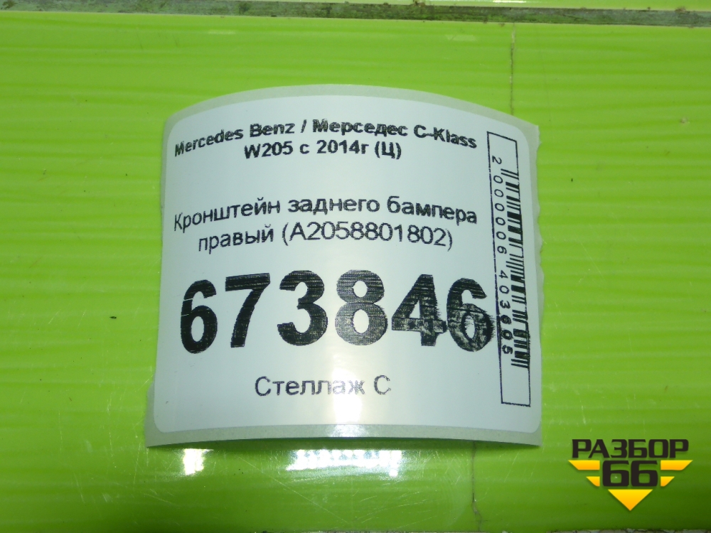 Кронштейн заднего бампера правый (A2058801802) для Mercedes Benz C-Klass W205 с 2014г (Ц) в Москве