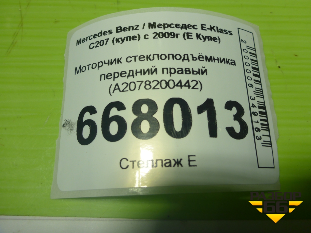 Моторчик стеклоподъёмника передний правый (A2078200442) для Mercedes Benz E-Klass C207 (купе) с 2009г (Е Купе) в Москве