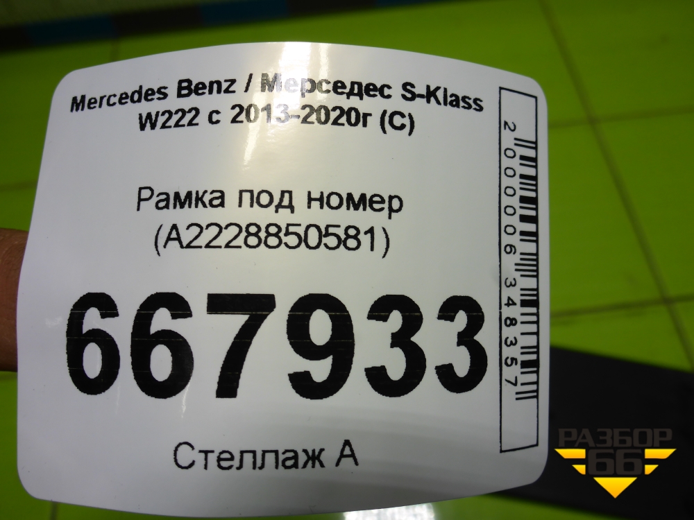 Рамка под номер (A2228850581) для Mercedes Benz S-Klass W222 с 2013-2020г (С) в Москве