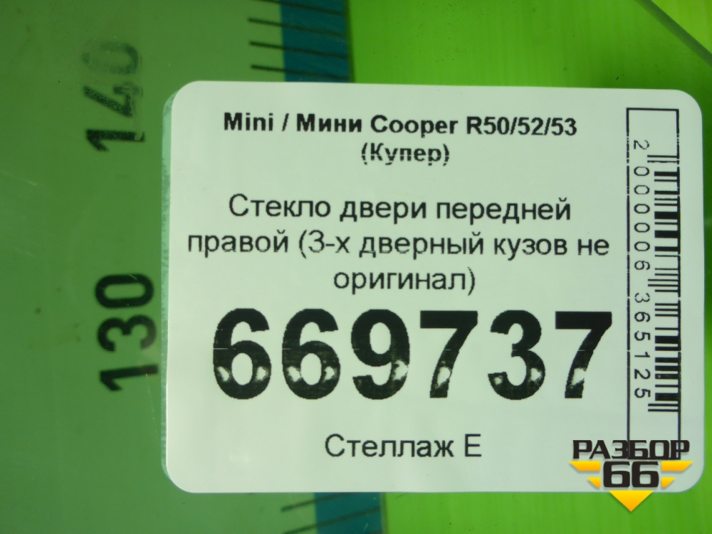 Стекло двери передней правой (3-х дверный кузов не оригинал) для Mini Cooper R50/52/53 с 2001-2006г (Купер) в Москве