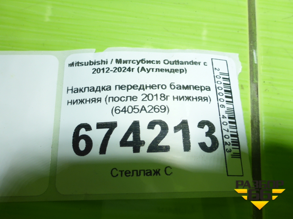 Накладка переднего бампера нижняя (после 2018г нижняя) (6405A269) для Mitsubishi Outlander с 2012-2024г (Аутлендер) в Москве