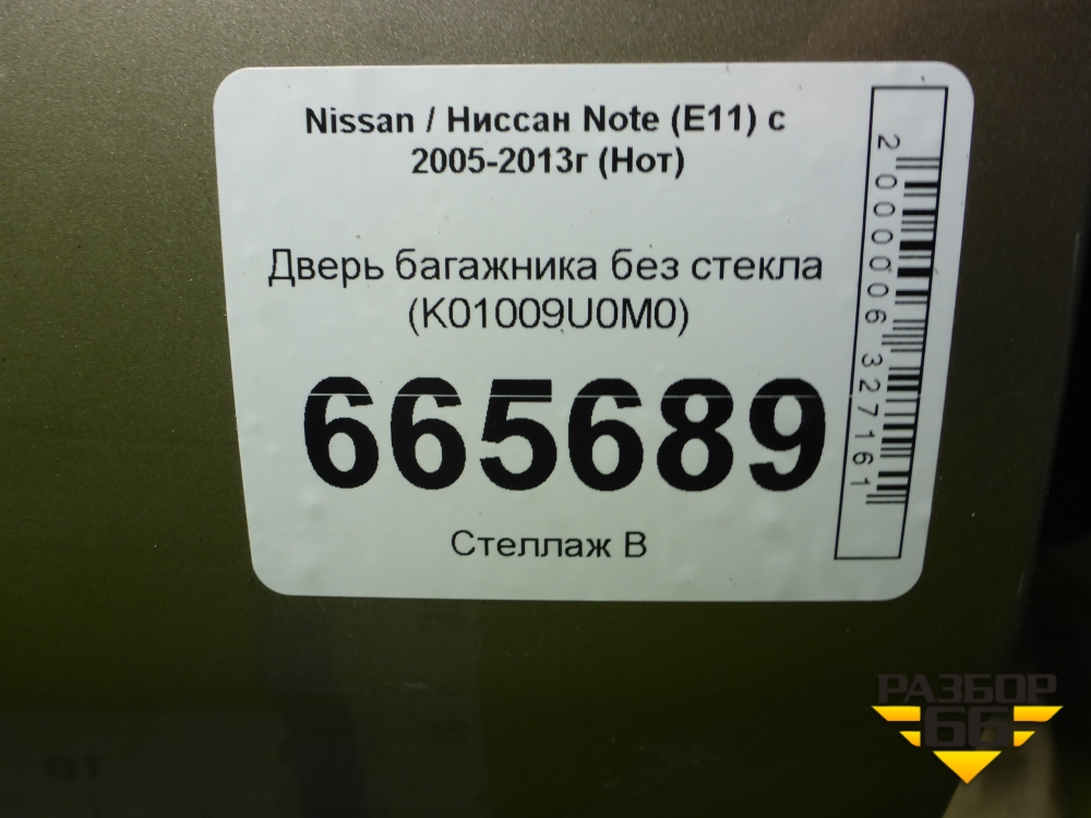 Дверь багажника без стекла (K01009U0M0) для Nissan Note (Е11) с 2005-2013г (Нот) в Москве