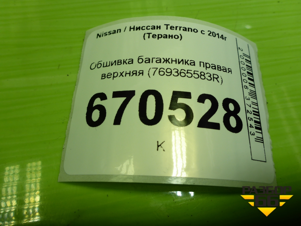 Обшивка багажника правая верхняя (769365583R) для Nissan Terrano с 2014г (Терано) в Москве