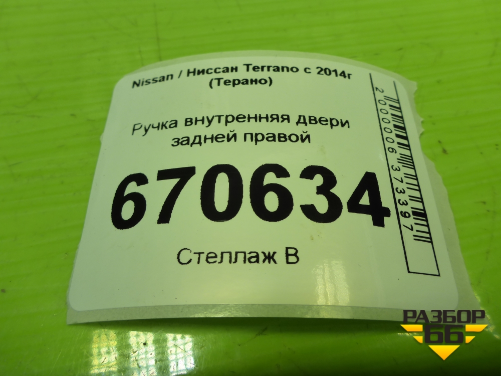 Ручка внутренняя двери задней правой (8200733847) для Nissan Terrano с 2014г (Терано) в Москве