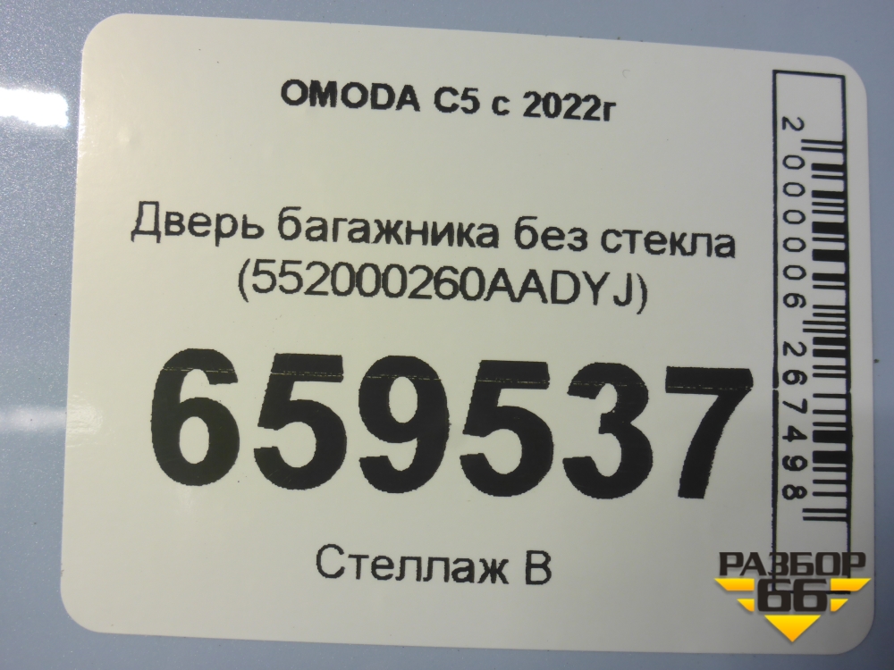 Дверь багажника без стекла (552000260AADYJ) для OMODA C5 с 2022г (Ц5) в Москве