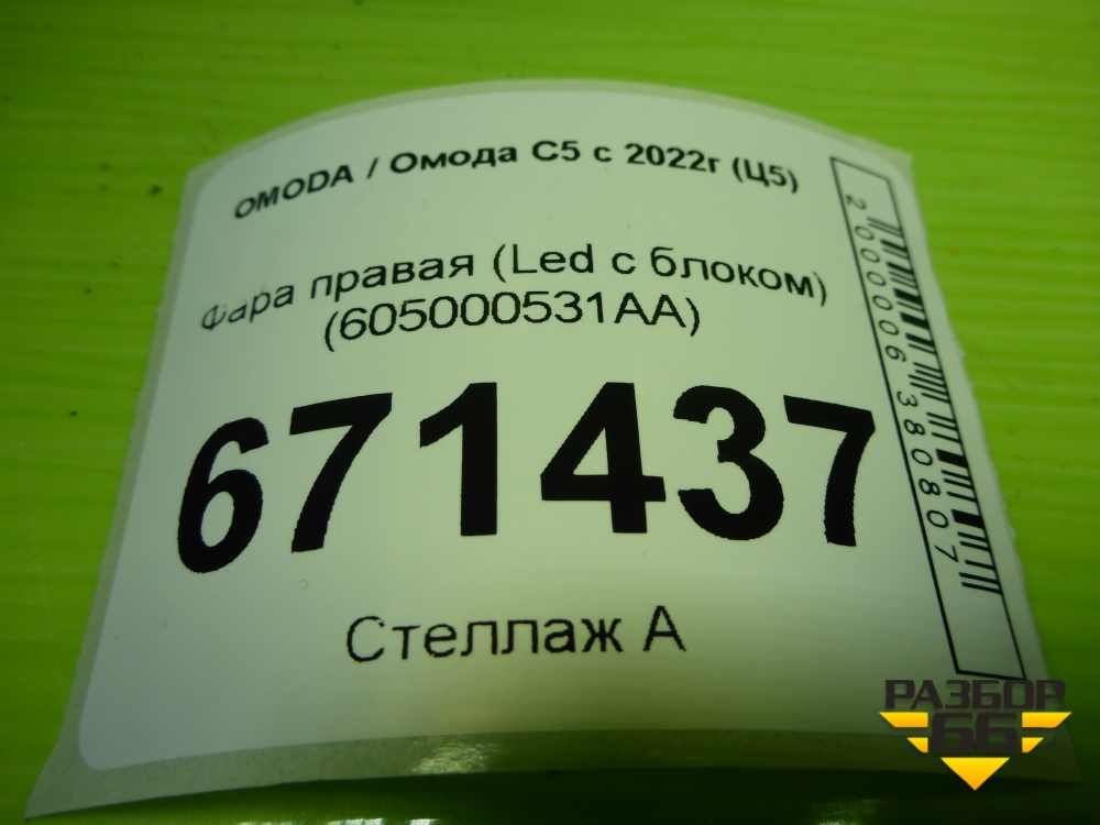 Фара правая (Led с блоком) (605000531AA) для OMODA C5 с 2022г (Ц5) в Москве