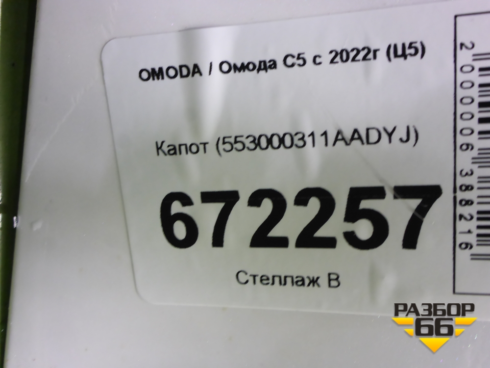 Капот (553000311AADYJ) для OMODA C5 с 2022г (Ц5) в Москве