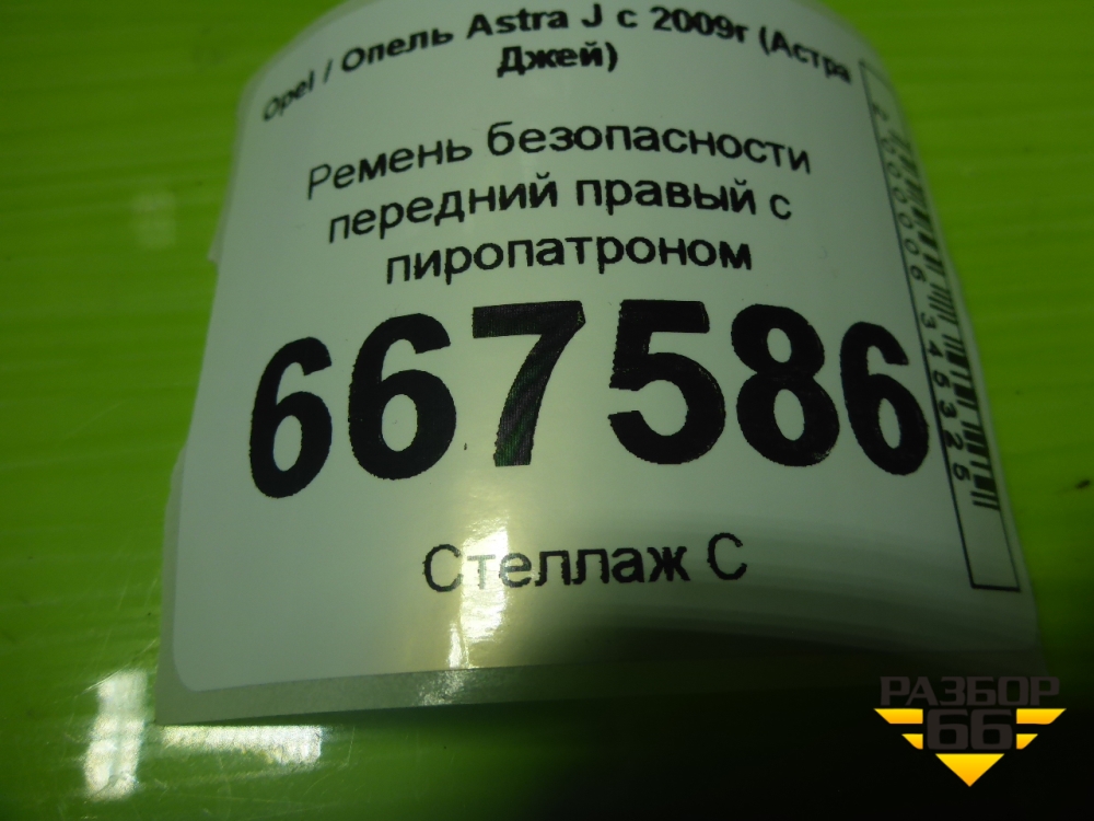 Ремень безопасности передний правый с пиропатроном (5ти дверный кузов) (13297101) для Opel Astra J с 2009г (Астра Джей) в Москве