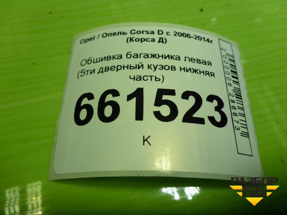 Обшивка багажника левая (5ти дверный кузов нижняя часть) (13230175) для Opel Corsa D с 2006-2014г (Корса Д) в Москве