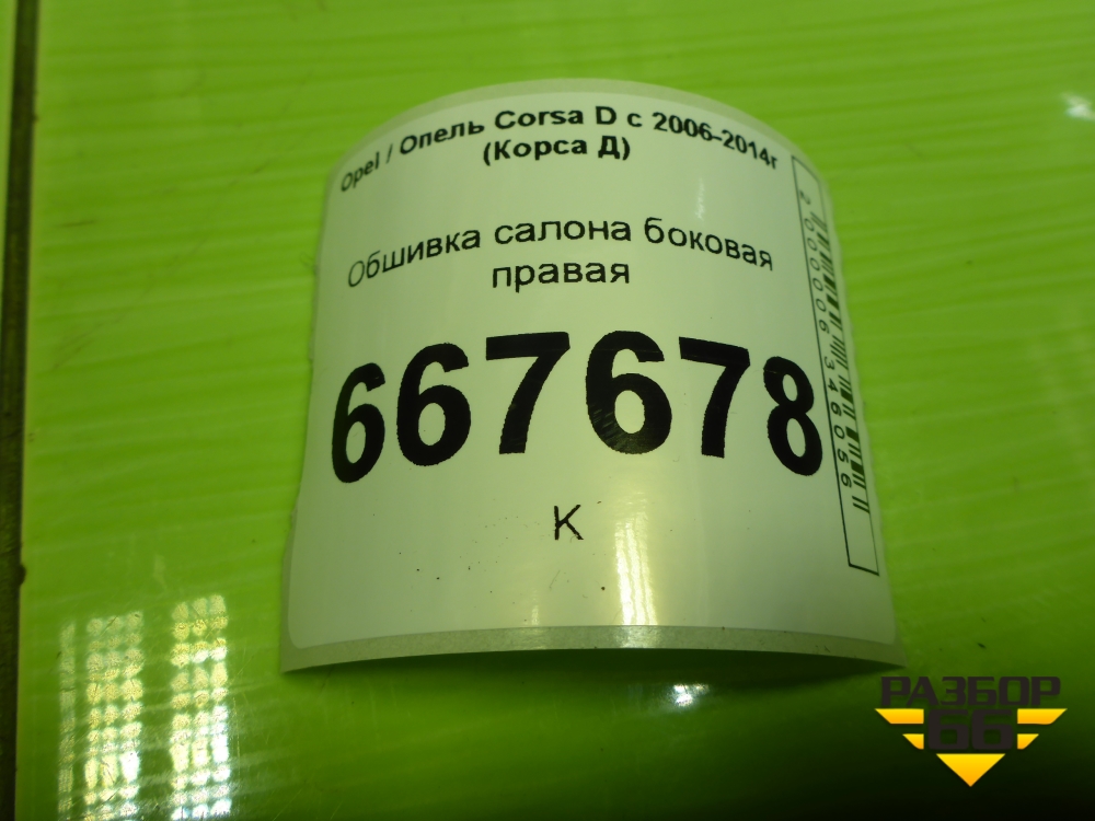 Обшивка салона боковая правая (3-х дверный кузов) для Opel Corsa D с 2006-2014г (Корса Д) в Москве