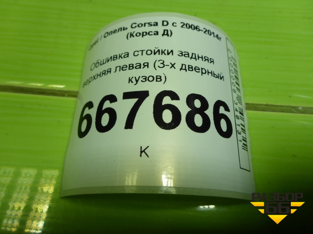 Обшивка стойки задняя верхняя левая (3-х дверный кузов) (13180580) для Opel Corsa D с 2006-2014г (Корса Д) в Москве