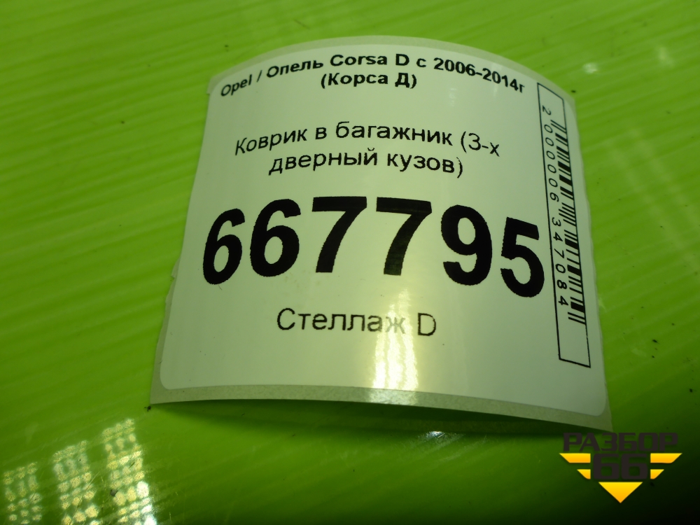 Коврик в багажник (3-х дверный кузов) для Opel Corsa D с 2006-2014г (Корса Д) в Москве