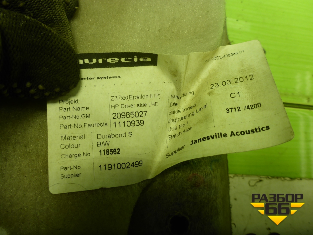 Накладка на торпедо (правая под бардачком) (20985027) для Opel Insignia с 2008-2017г (Инсигниа) в Москве