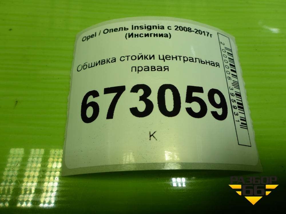 Обшивка стойки центральная правая (13221255) для Opel Insignia с 2008-2017г (Инсигниа) в Москве
