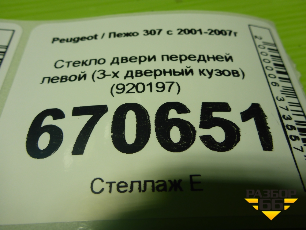 Стекло двери передней левой (3-х дверный кузов) (920197) для Peugeot 307 с 2001-2007г в Москве