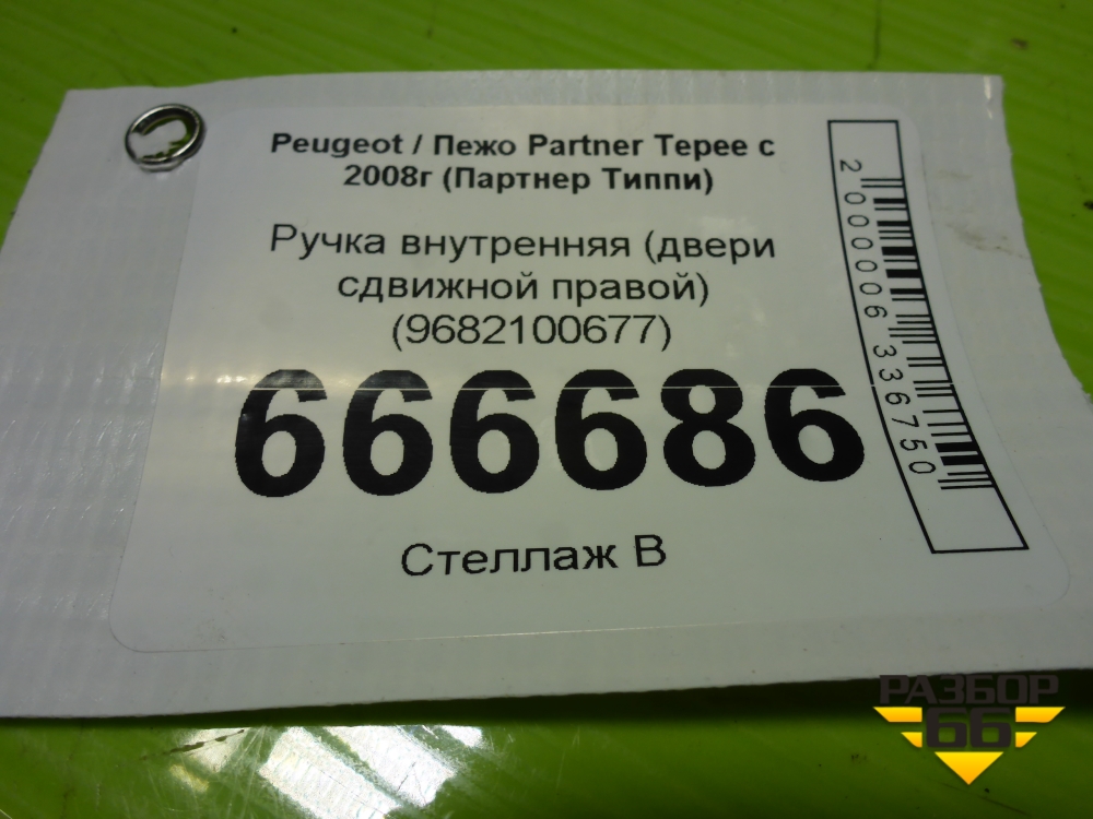 Ручка внутренняя (двери сдвижной правой) (9682100677) для Peugeot Partner Tepee с 2008г (Партнер Типпи) в Москве