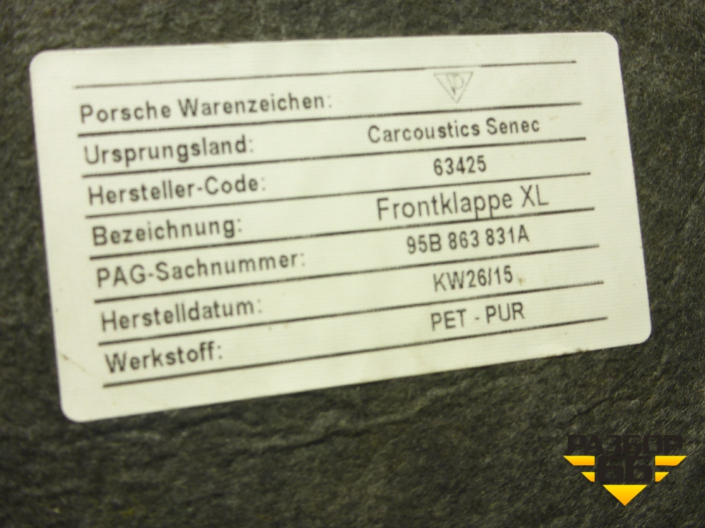 Шумоизоляция капота (95B863831A) для Porsche Cayenne с 2010-2017г (Каен) в Москве