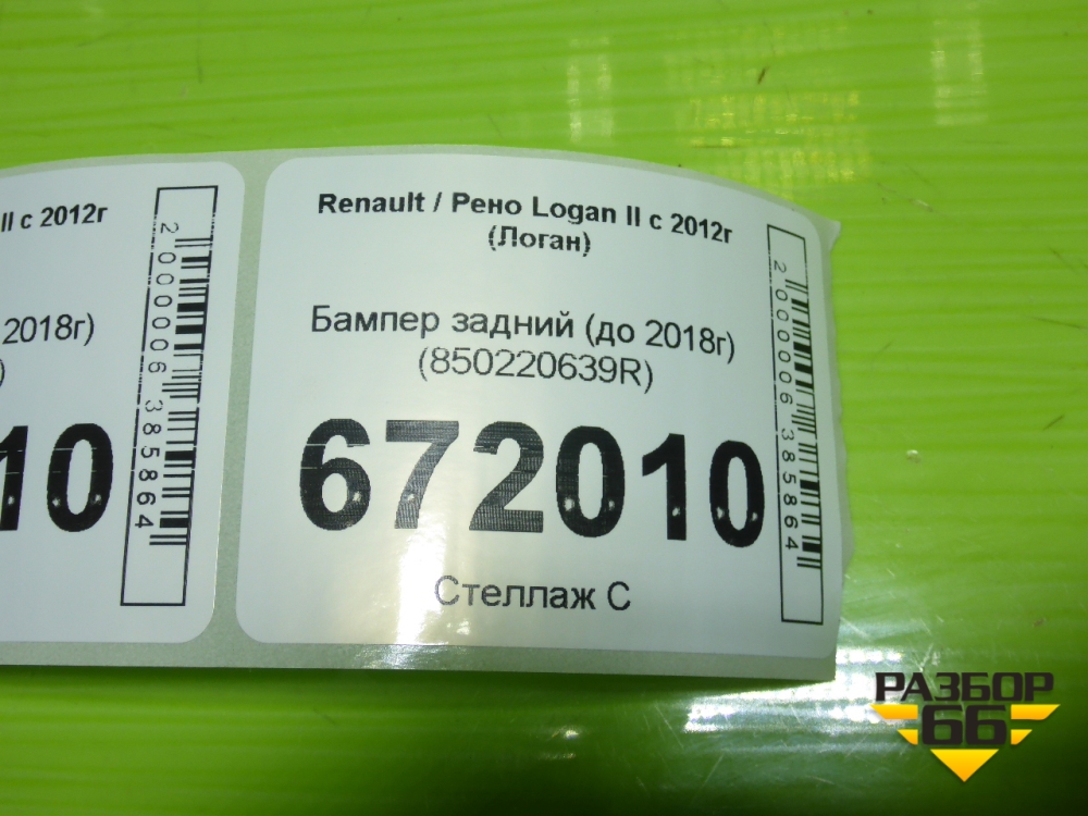 Бампер задний (до 2018г) (850220639R) для Renault Logan II с 2012г (Логан) в Москве