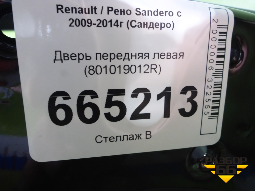Дверь передняя левая (801019012R) для Renault Sandero с 2009-2014г (Сандеро) в Москве