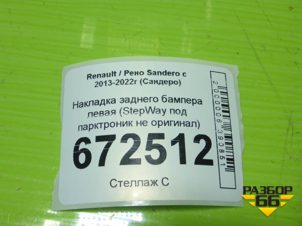 Накладка заднего бампера левая (StepWay под парктроник не оригинал) для Renault Sandero с 2013-2022г (Сандеро) в Москве