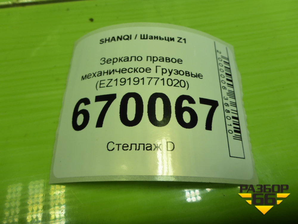 Зеркало правое механическое (EZ19191771020) для SHANQI Z1 в Москве
