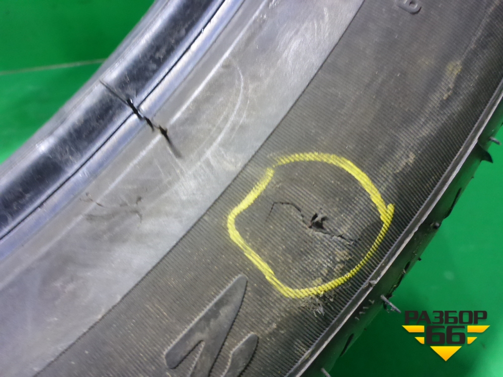 Состояние: остаток протектора 7мм, ремонтировался боковой порез, поврежден протектор
