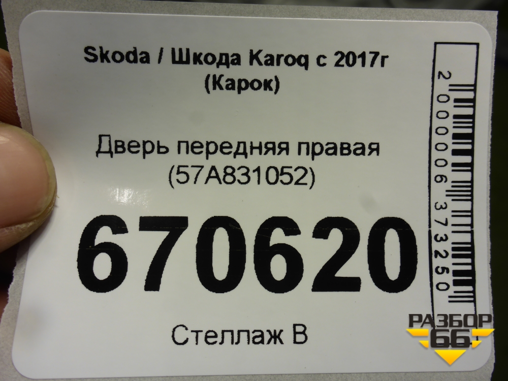 Дверь передняя правая (57A831052) для Skoda Karoq с 2017г (Карок) в Москве
