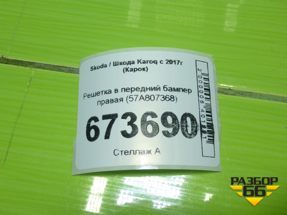 Решетка в передний бампер правая (57A807368) для Skoda Karoq с 2017г (Карок) в Москве