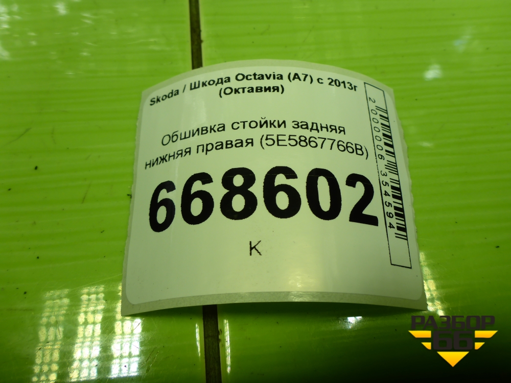 Обшивка стойки задняя нижняя правая (лифтбек) (5E5867766B) для Skoda Octavia (A7) с 2013г (Октавия) в Москве