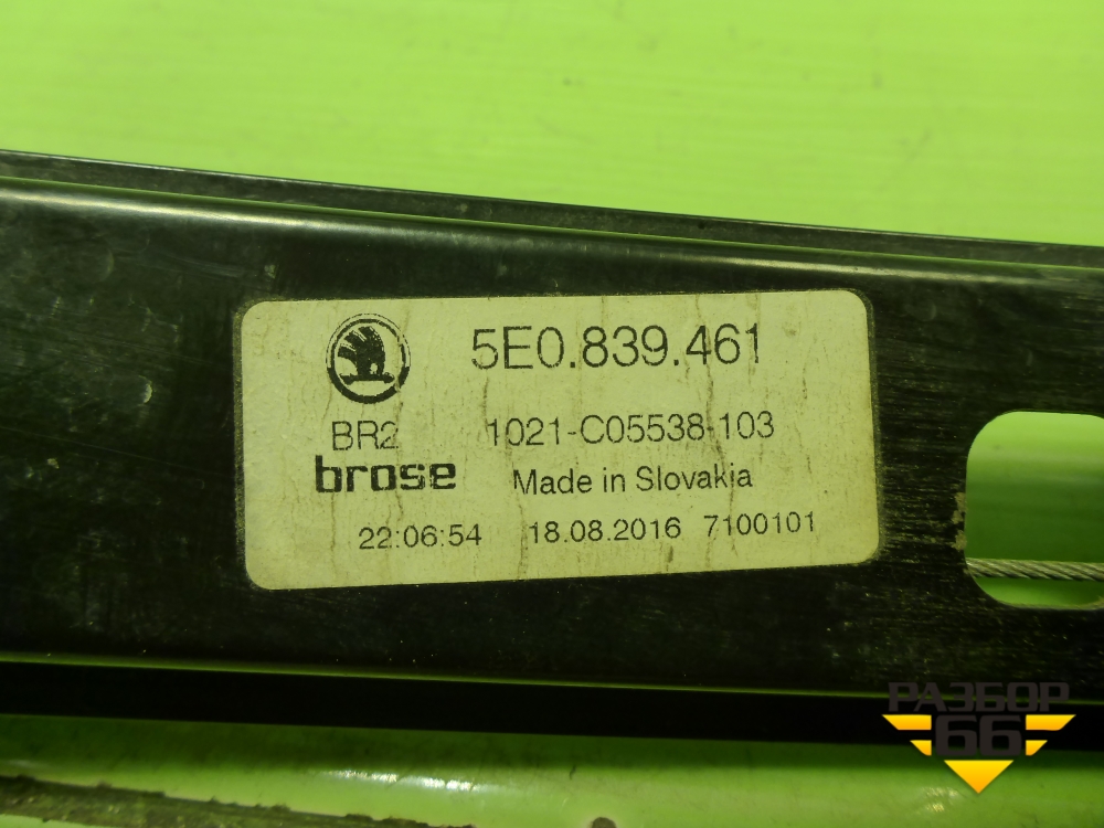 Стеклоподъёмник электрический задний левый (без моторчика) (5E0839461) для Skoda Octavia (A7) с 2013г (Октавия) в Москве