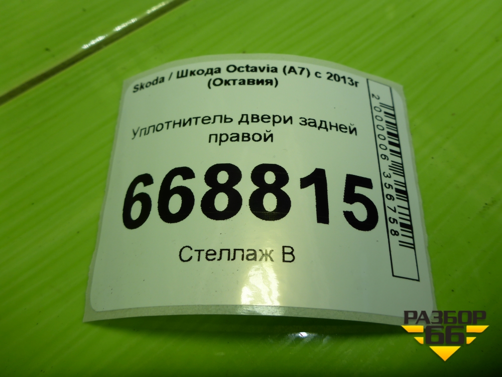 Уплотнитель двери задней правой (лифтебек) (5E5867368F) для Skoda Octavia (A7) с 2013г (Октавия) в Москве
