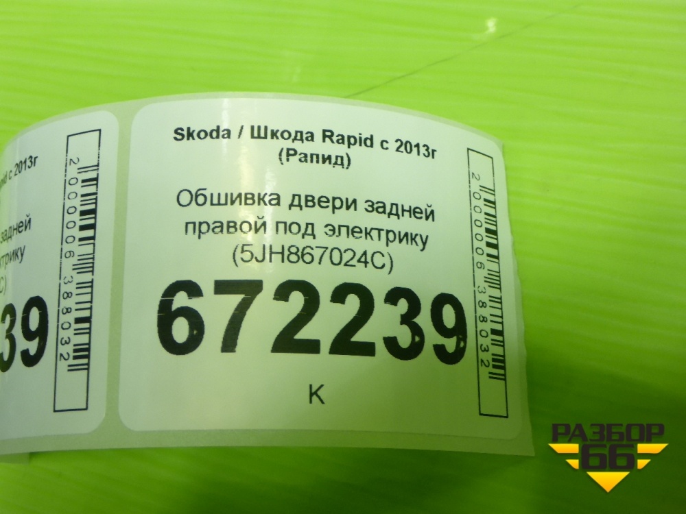 Обшивка двери задней правой под электрику (5JH867024C) для Skoda Rapid с 2013г (Рапид) в Москве